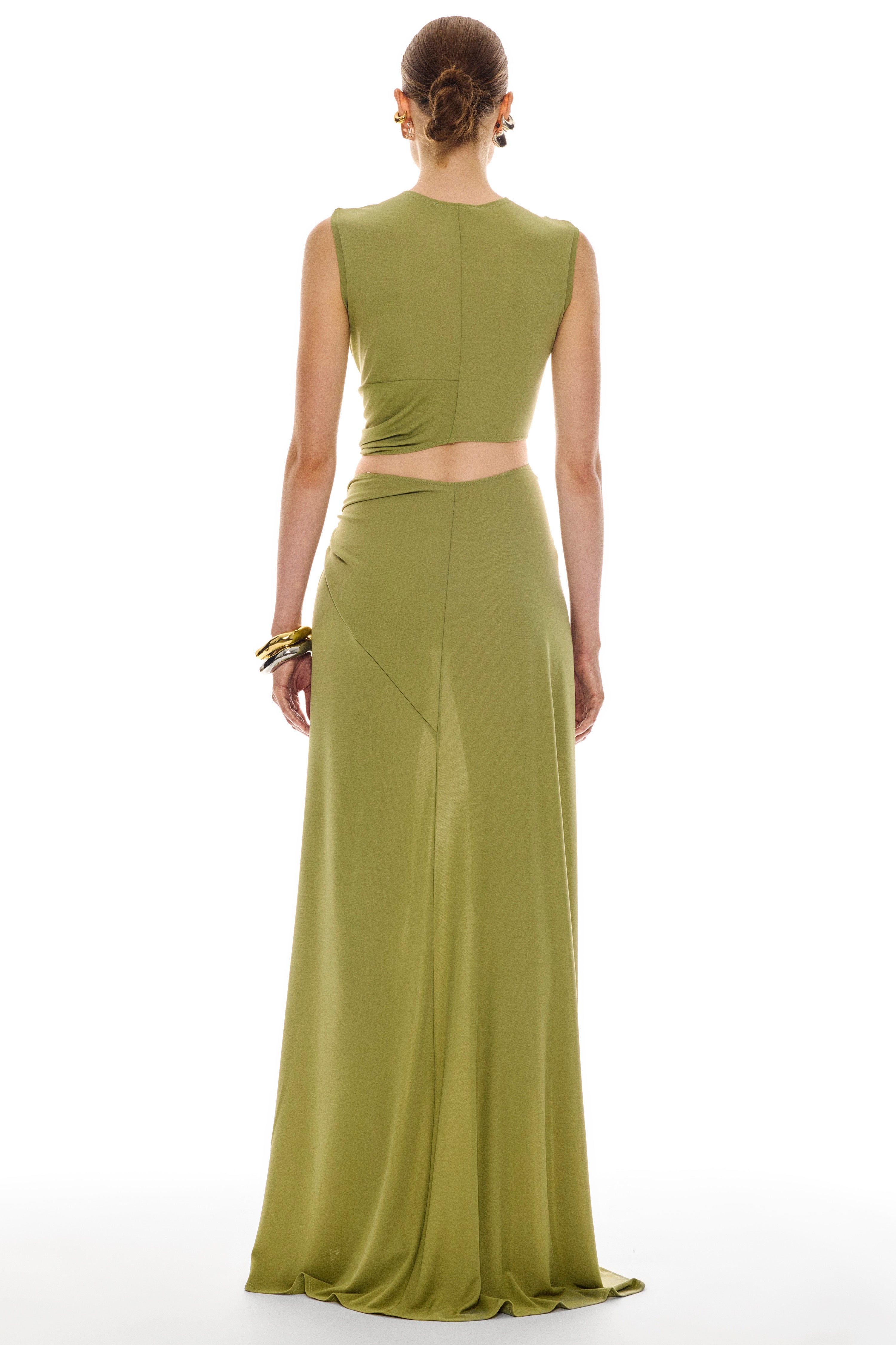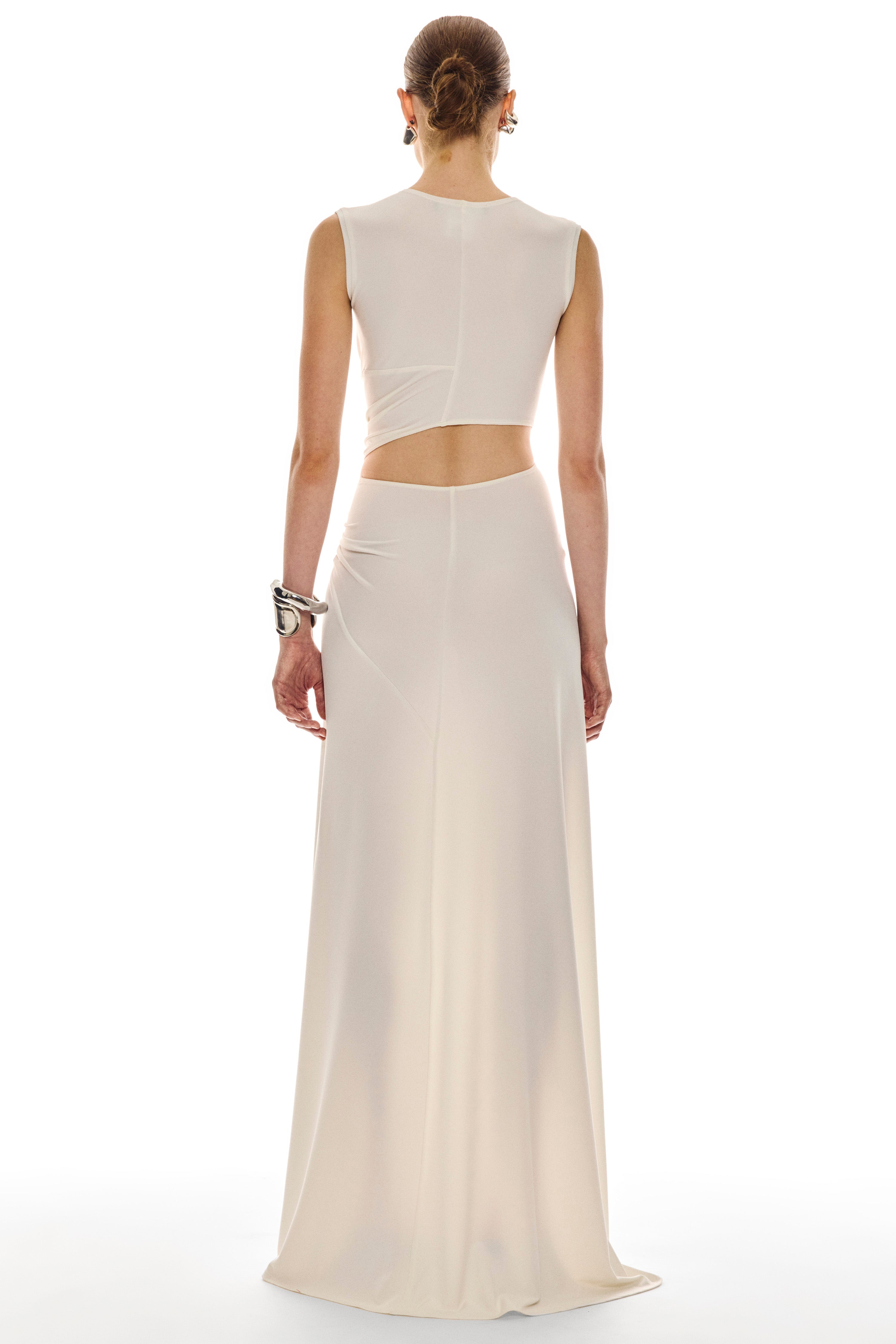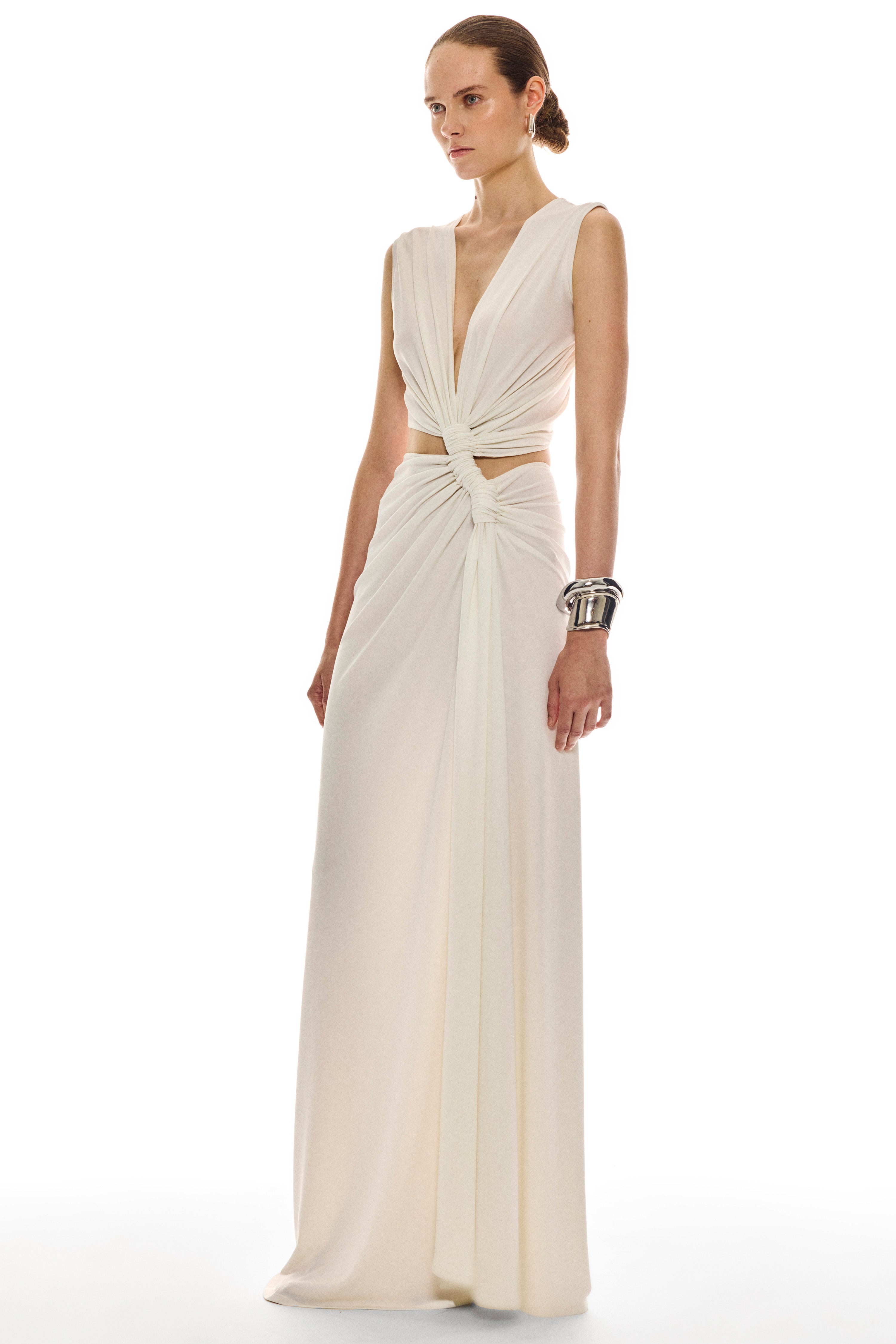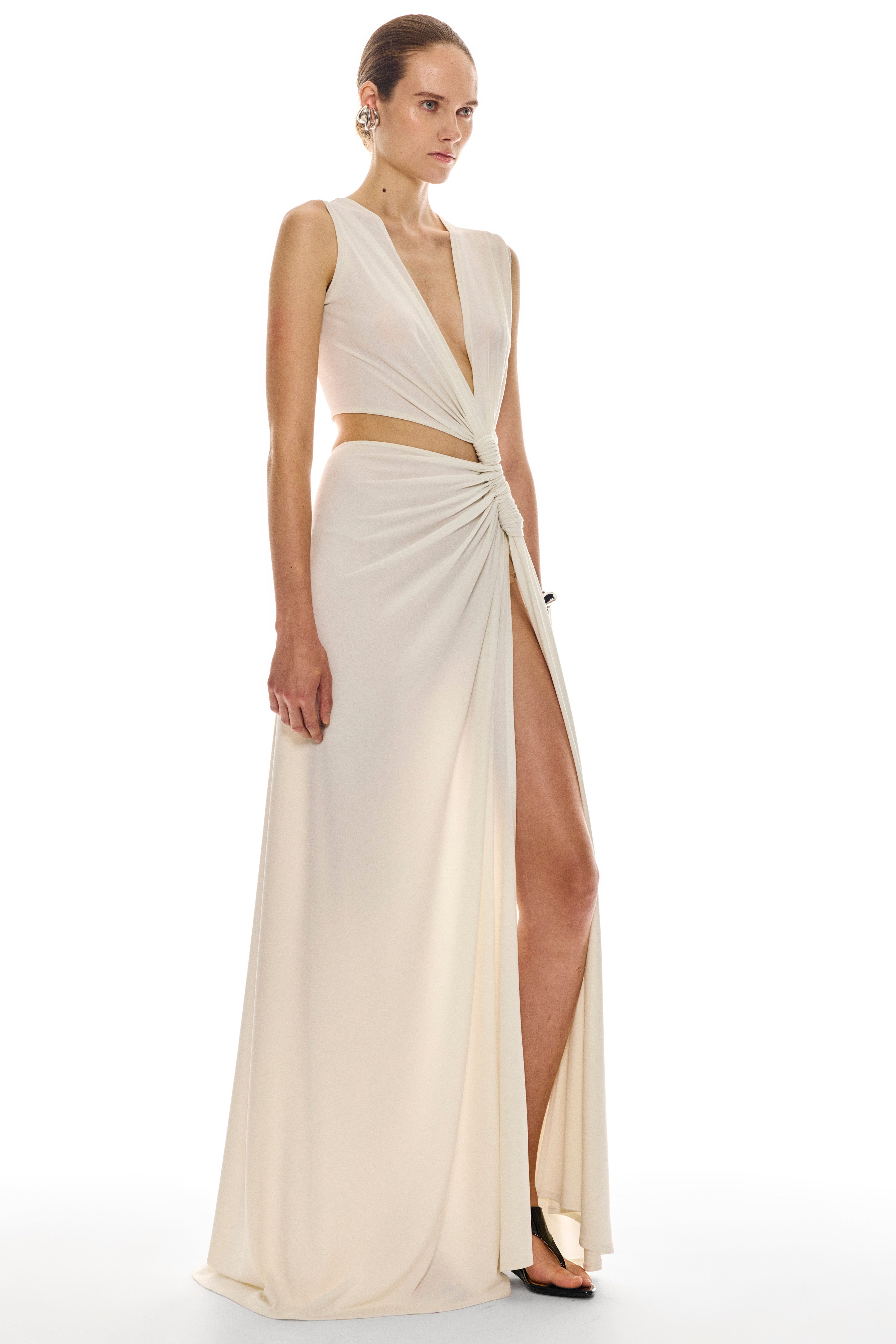 Italian crepe jersey triple loop dress.