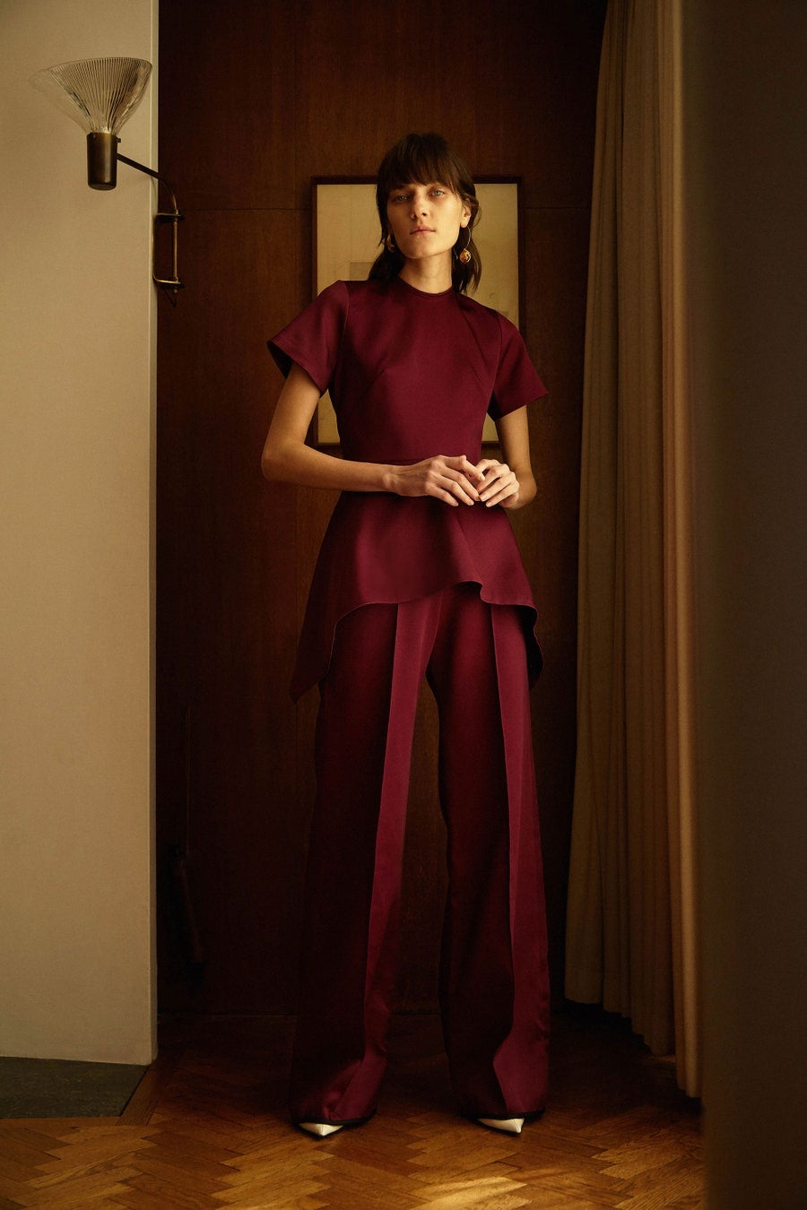 SID NEIGUM SIGNATURE SATIN PEPLUM BLOUSE