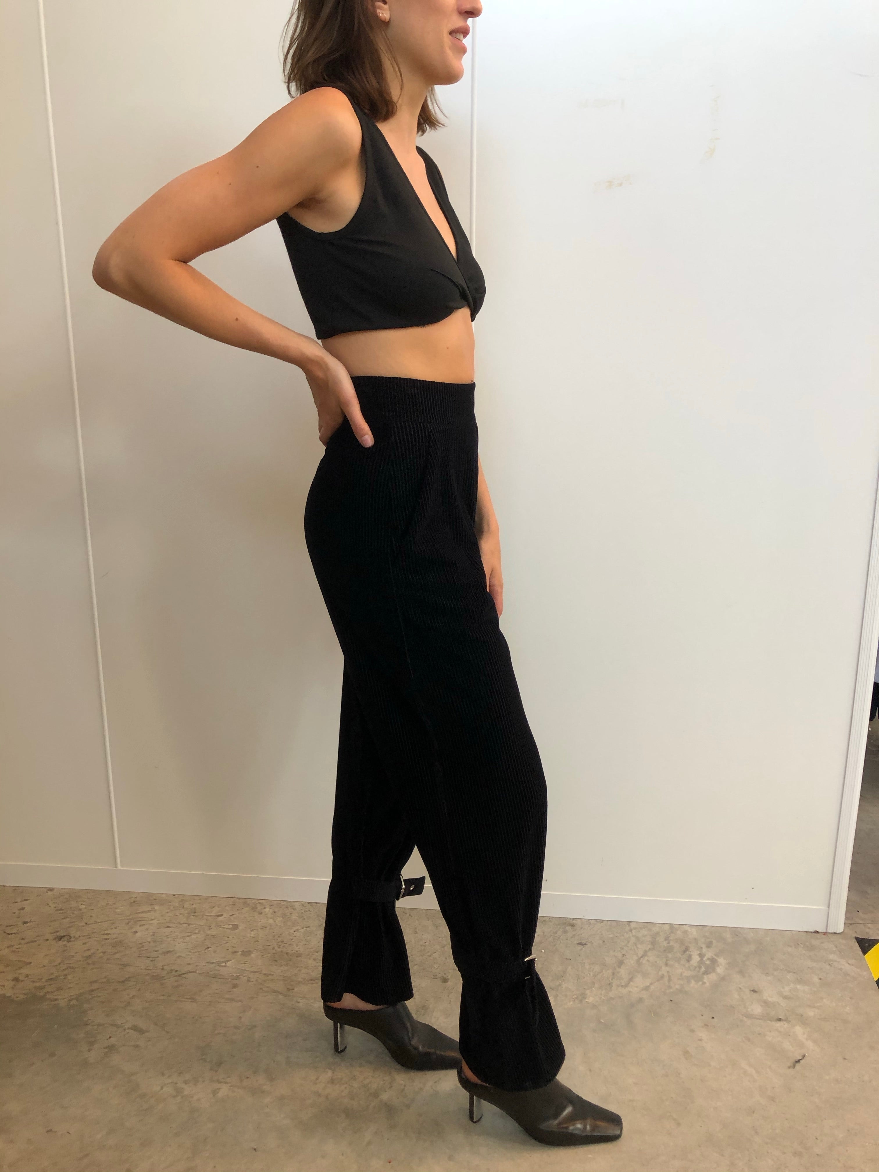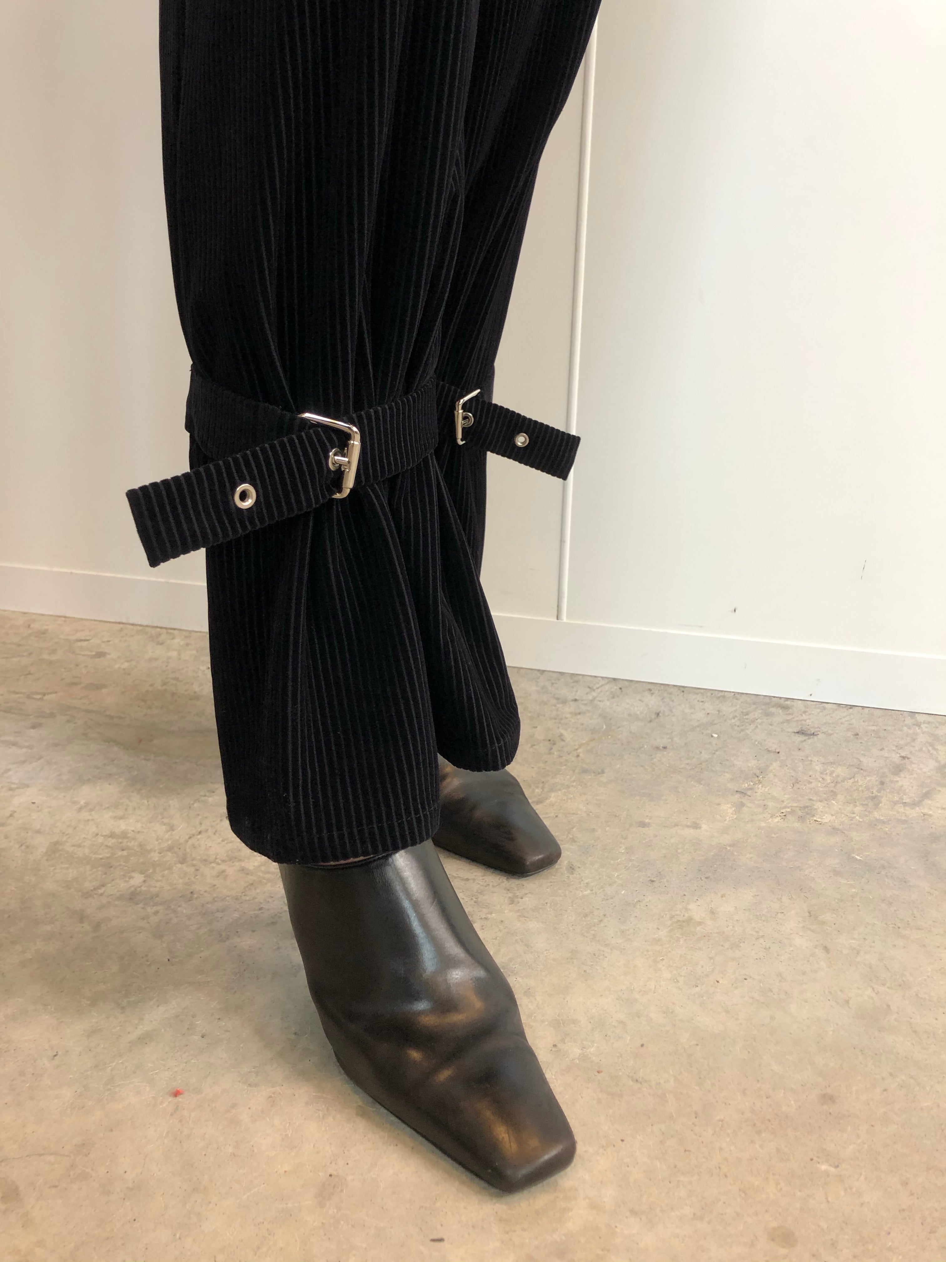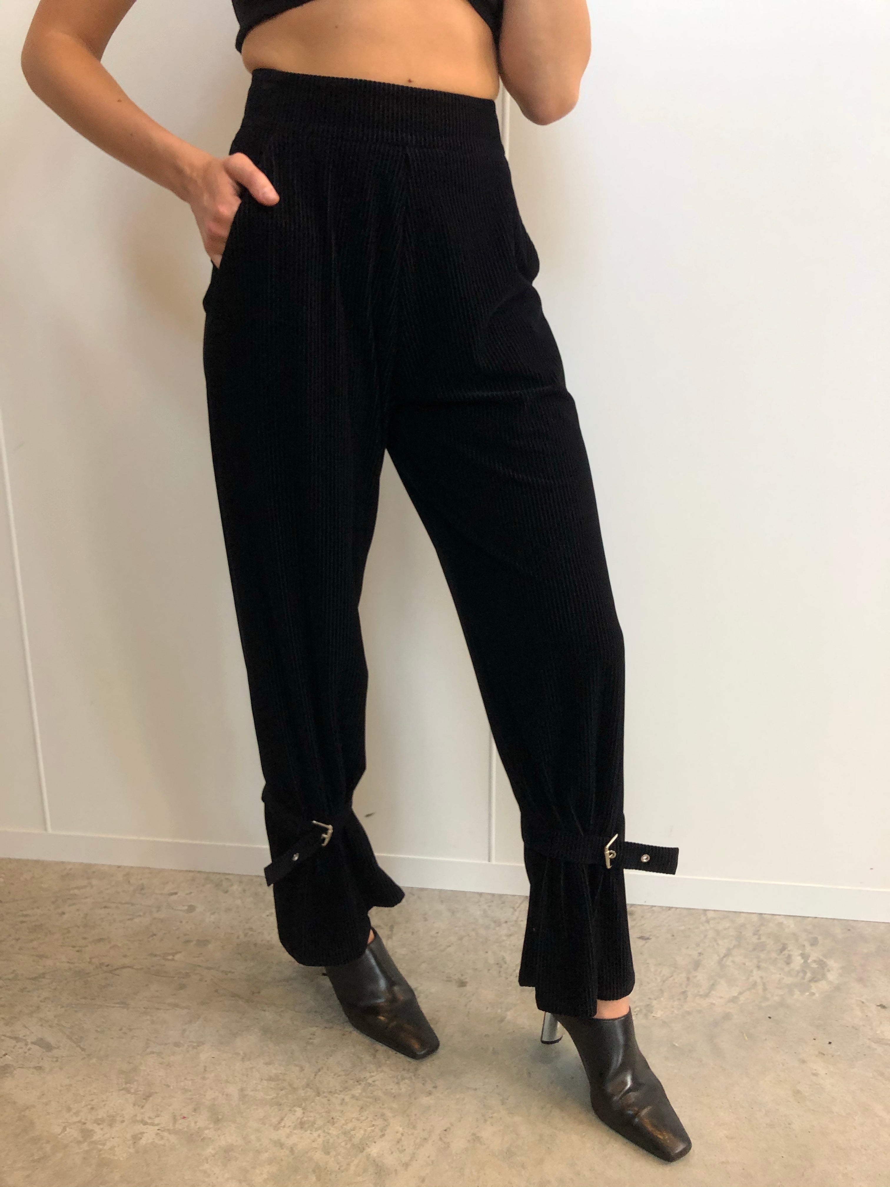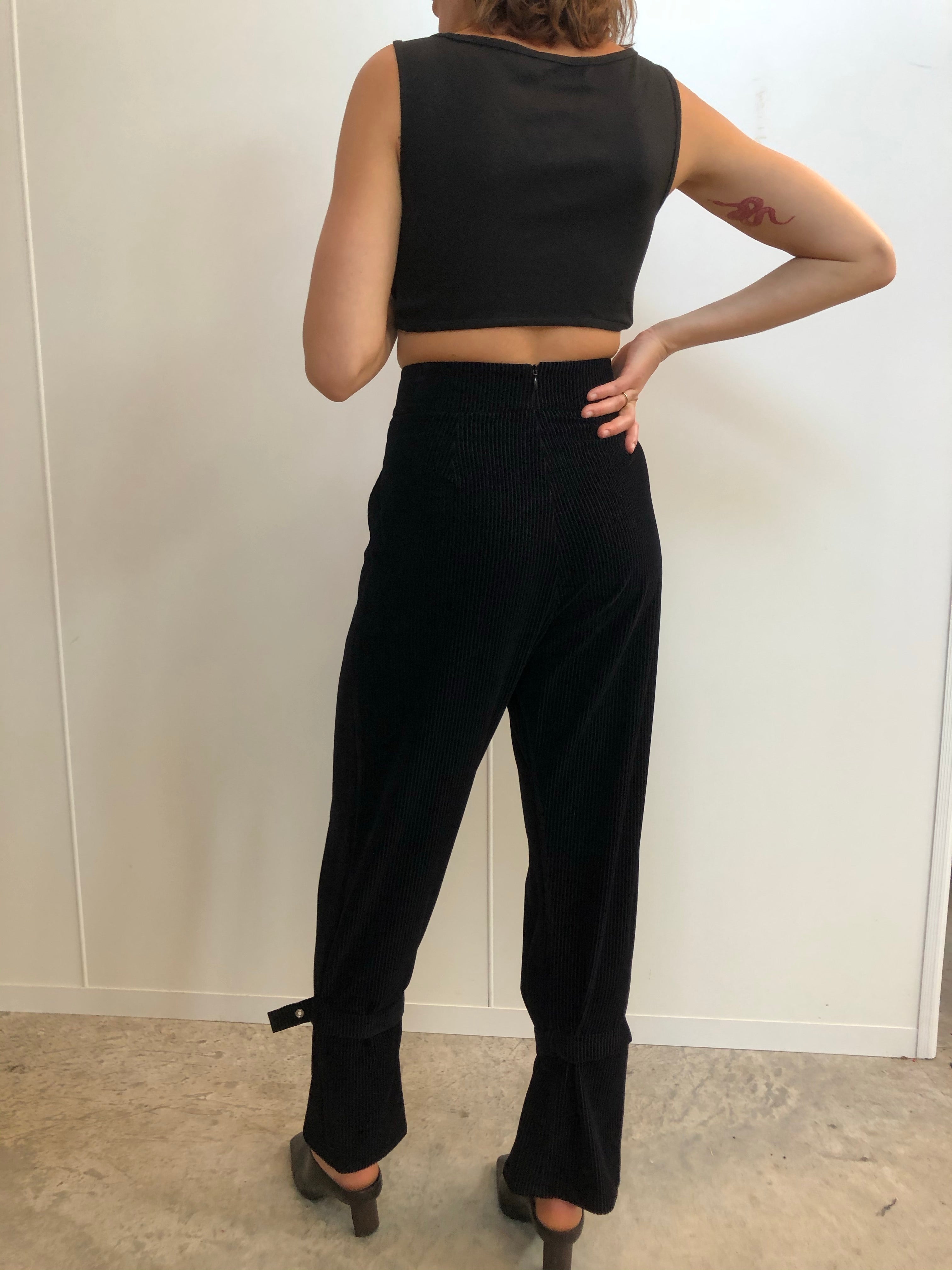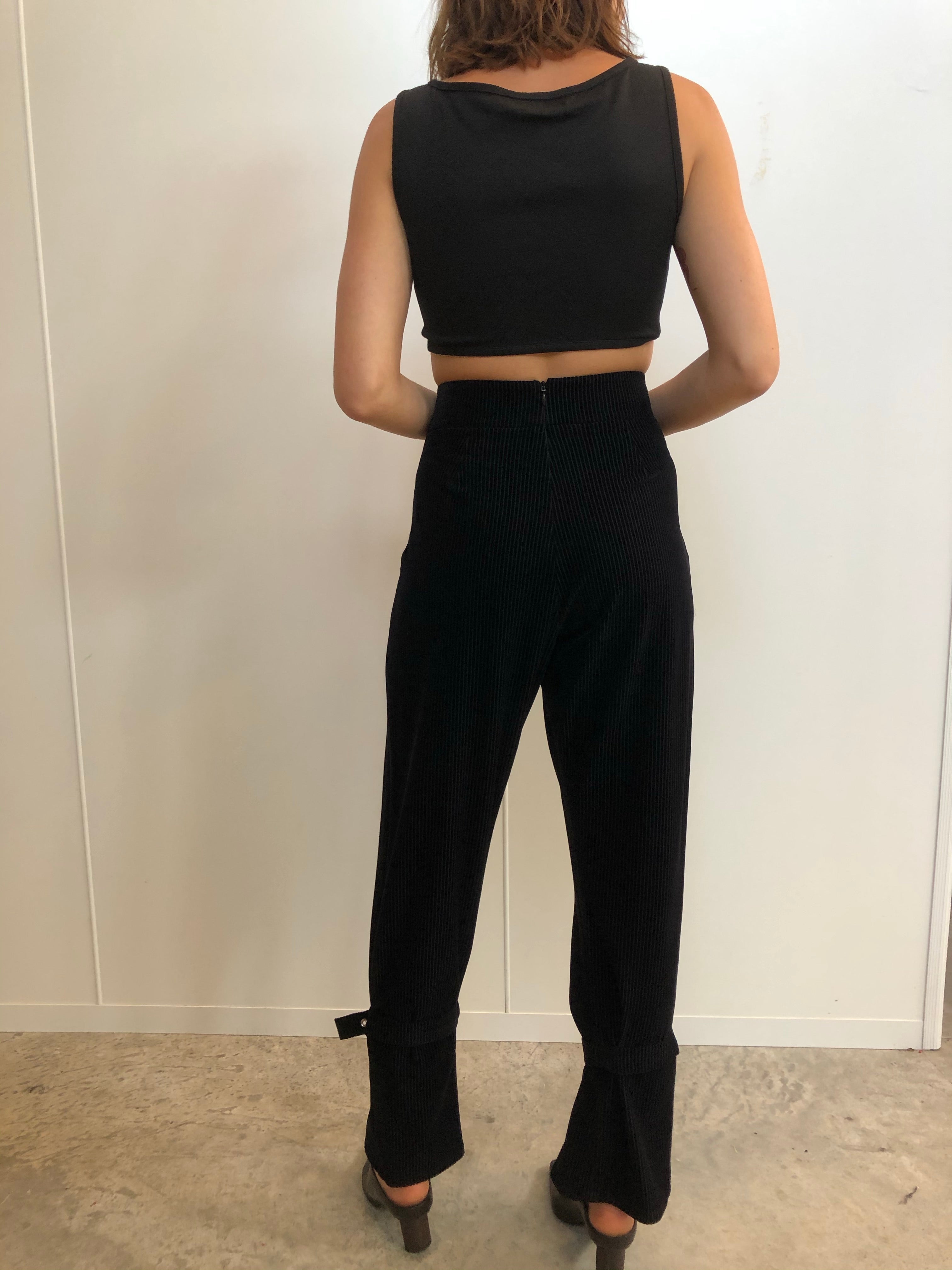 Soft and comfortable stretch cord fabric, back invisible zipper closure.