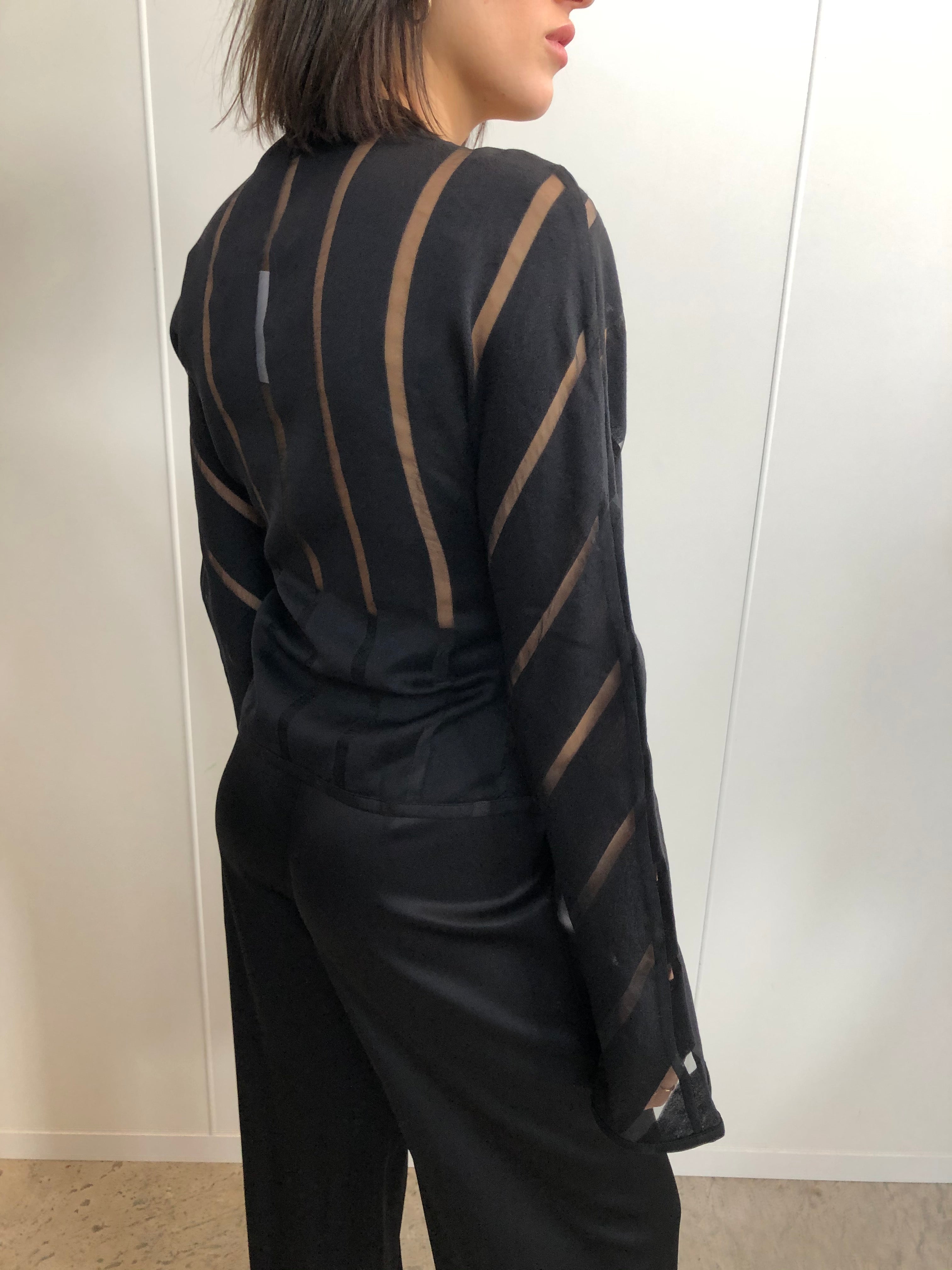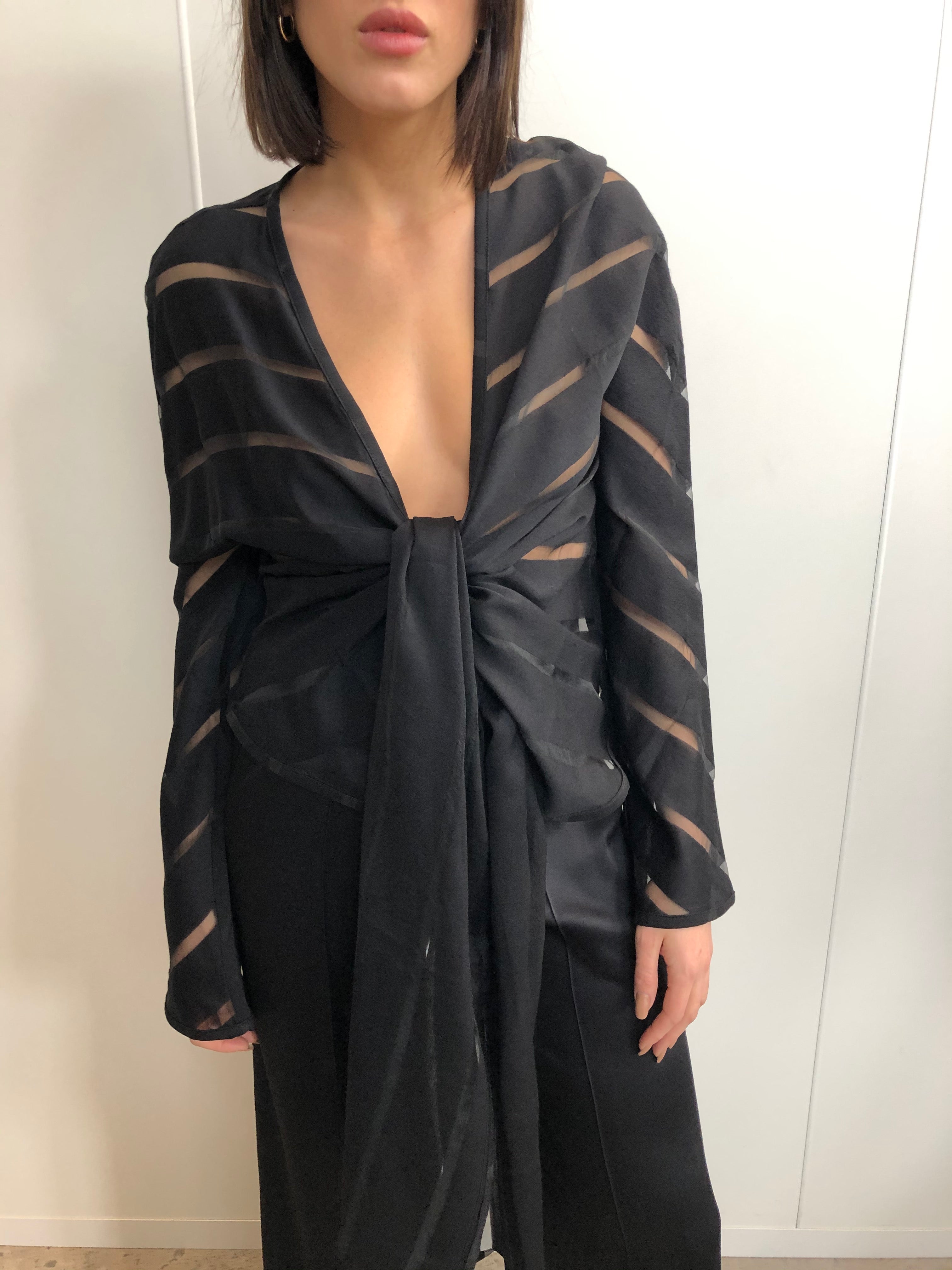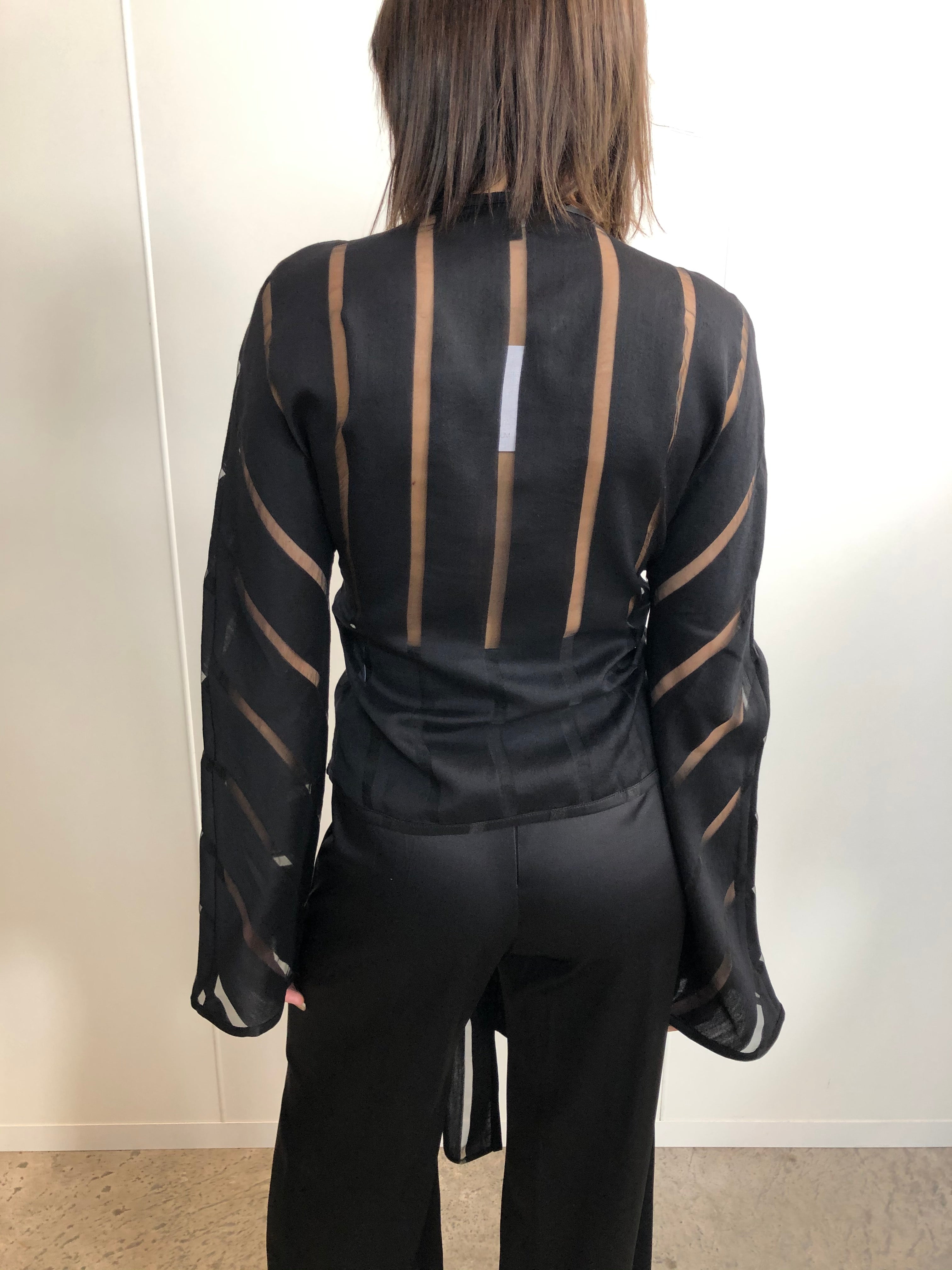 SID NEIGUM SIGNATURE SHEER STRIPE WRAP BLOUSE