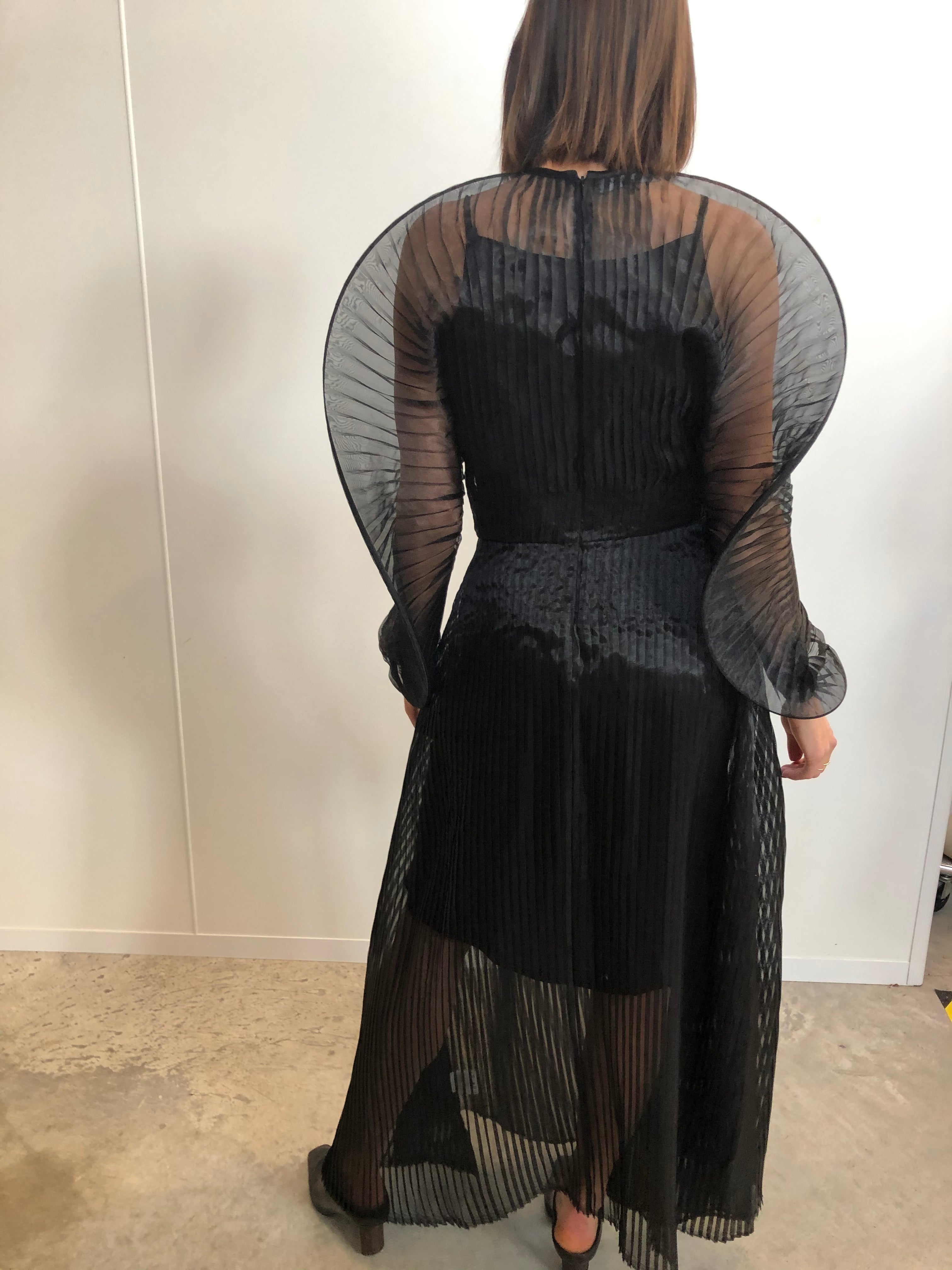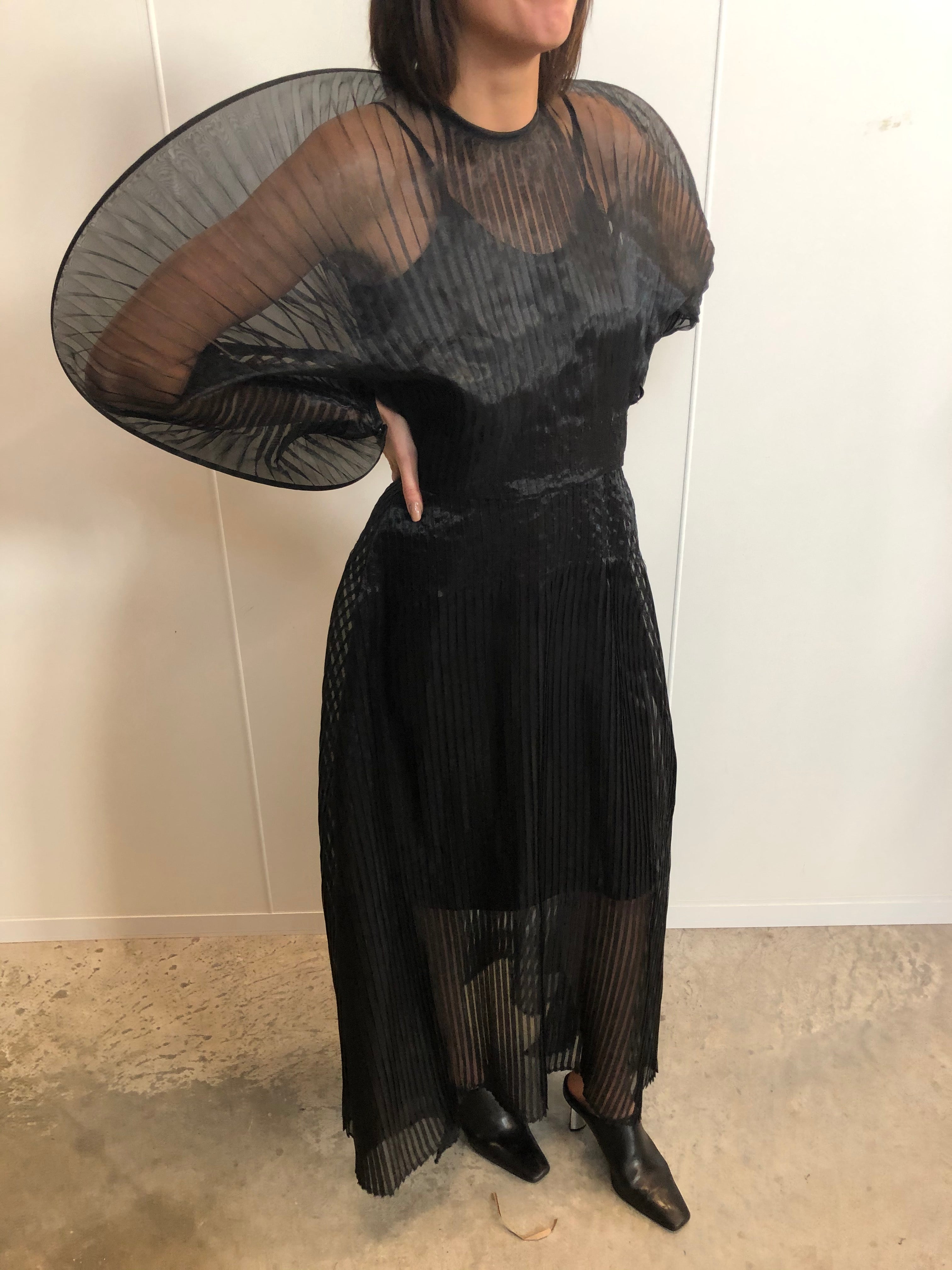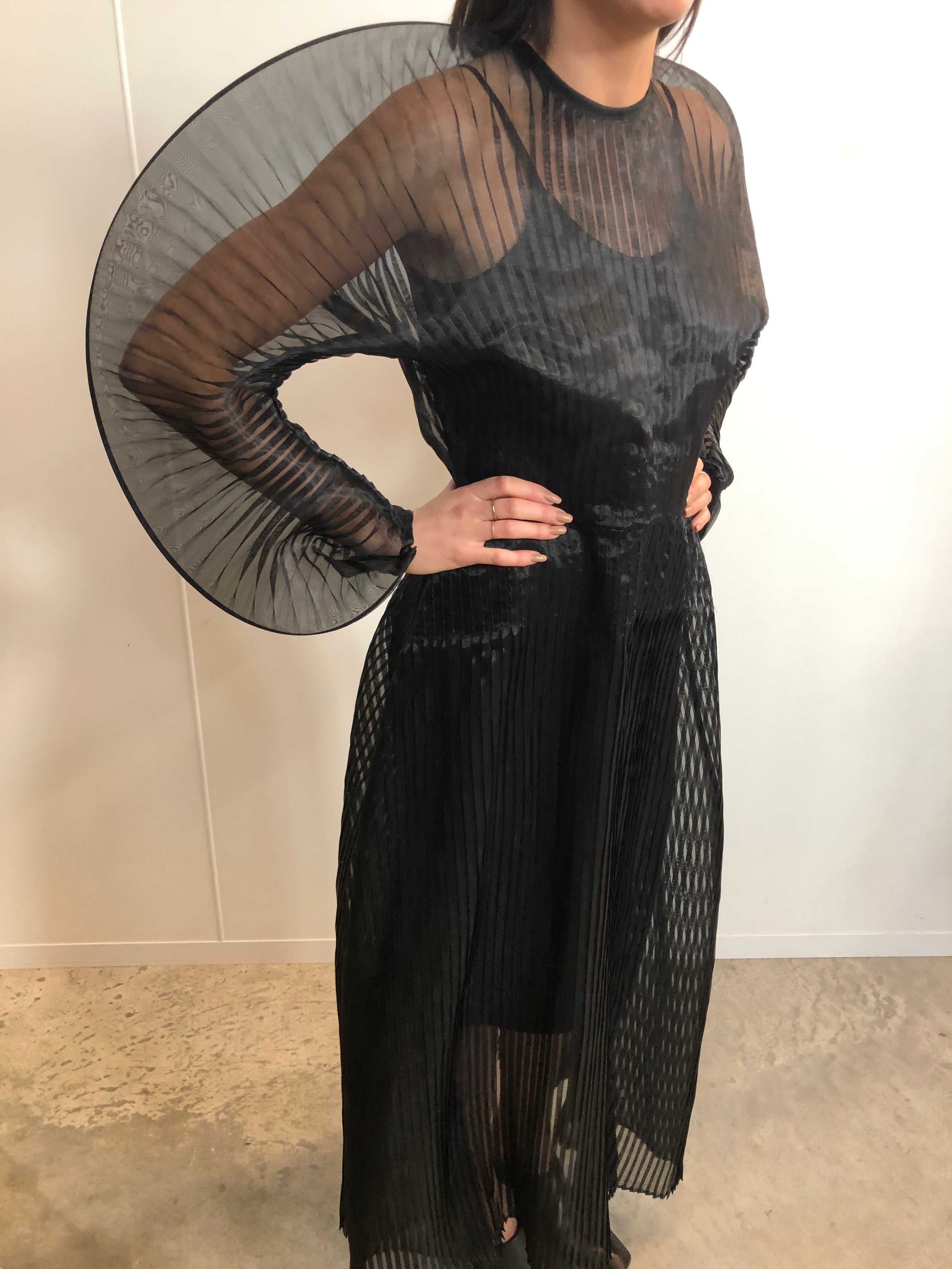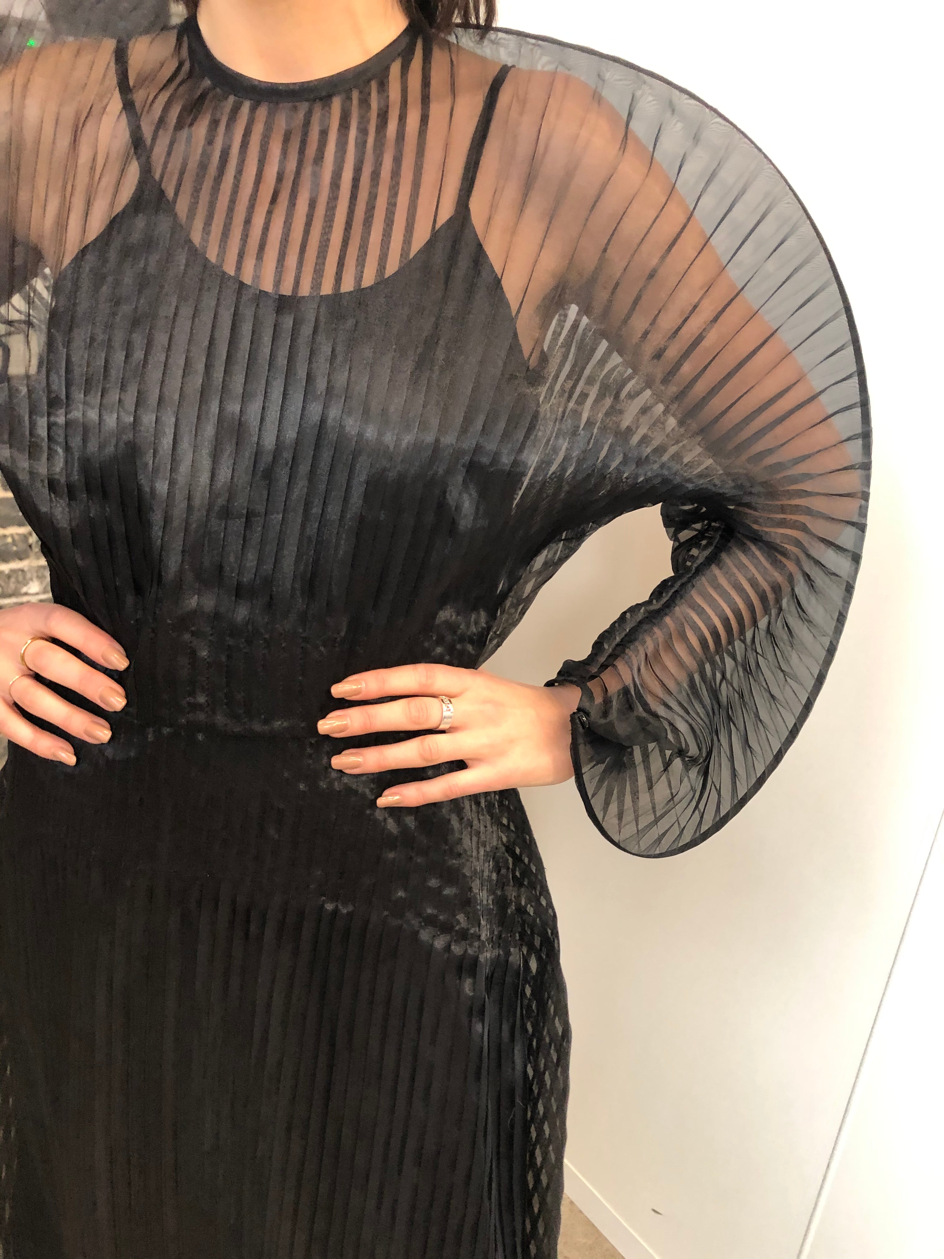 SID NEIGUM SIGNATURE SHEER PLEATED DRESS