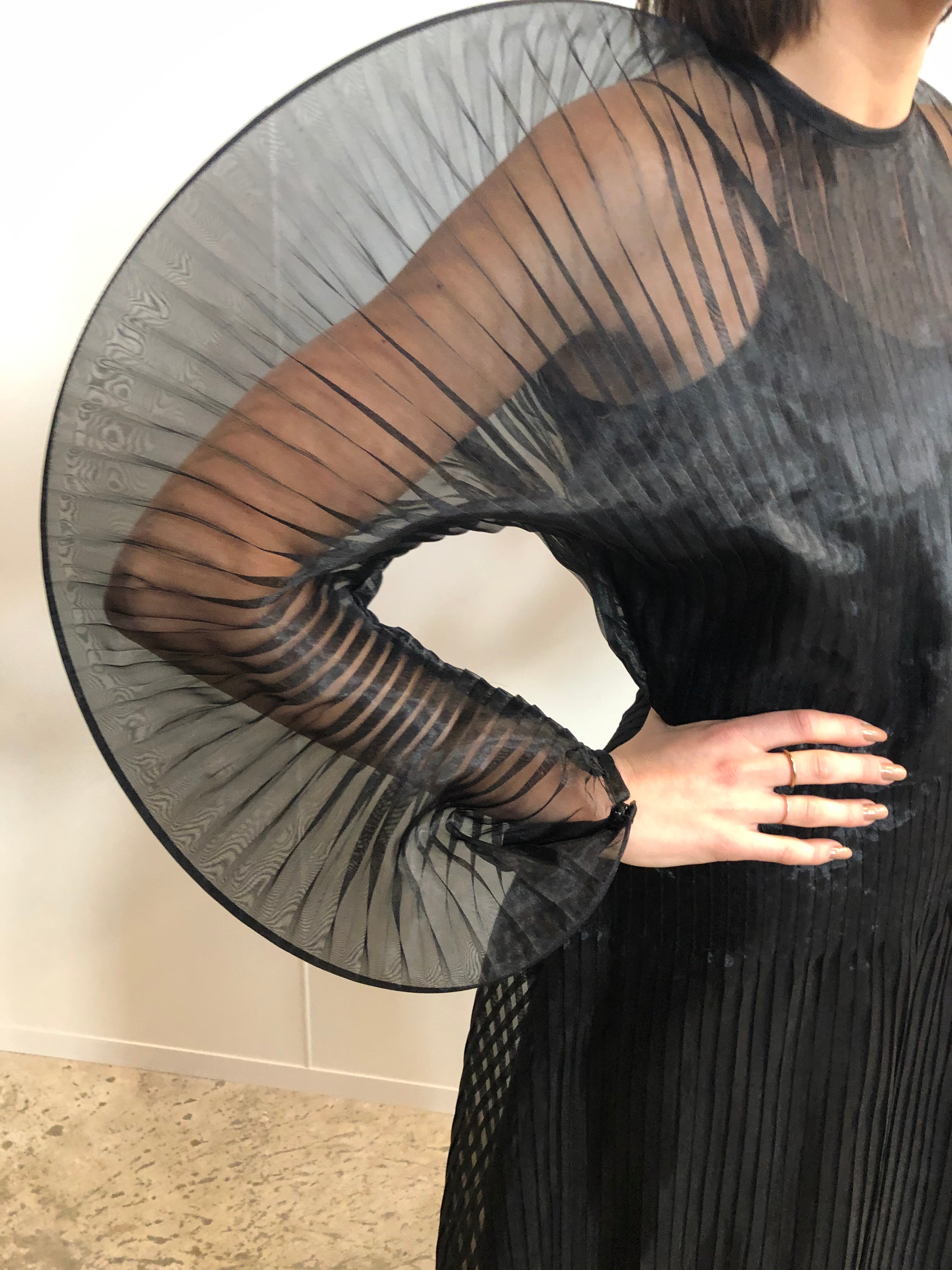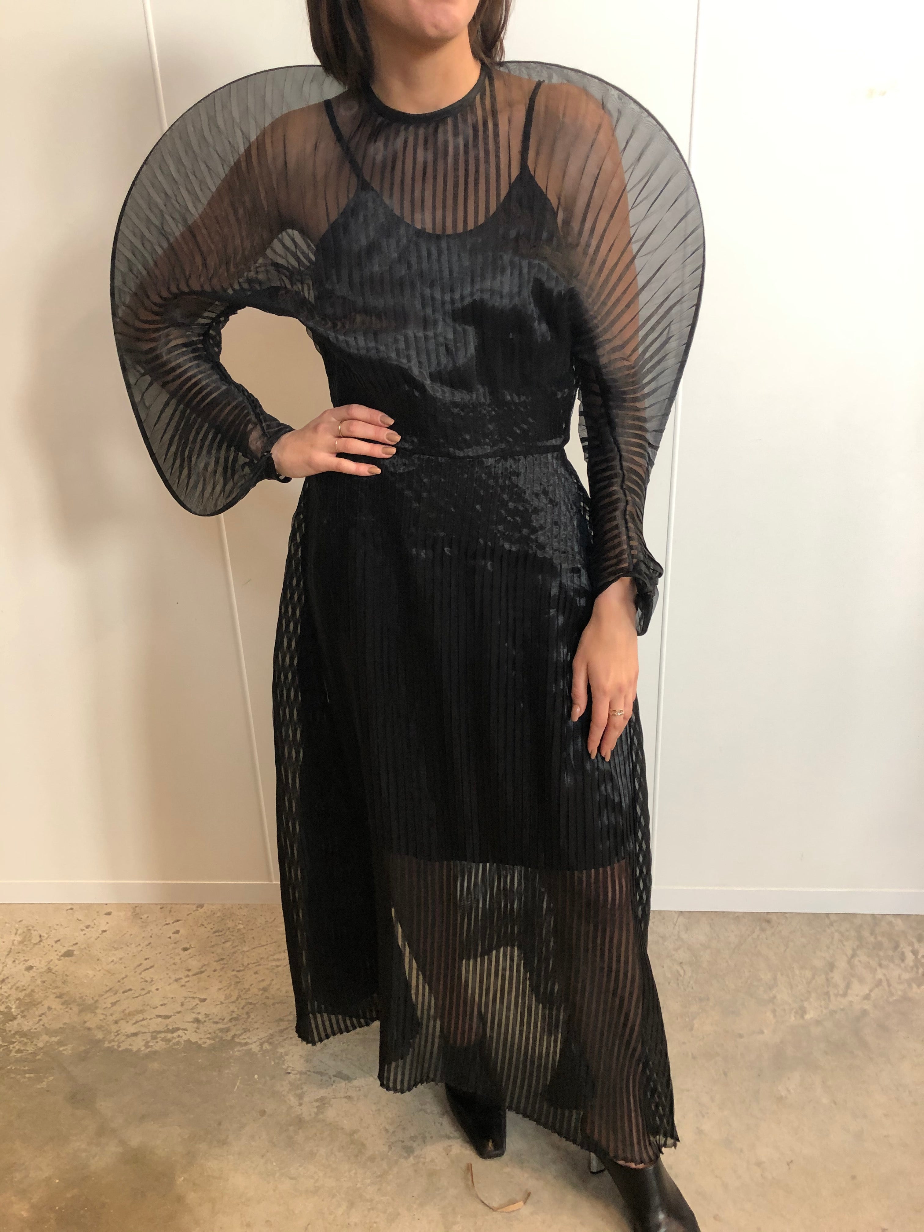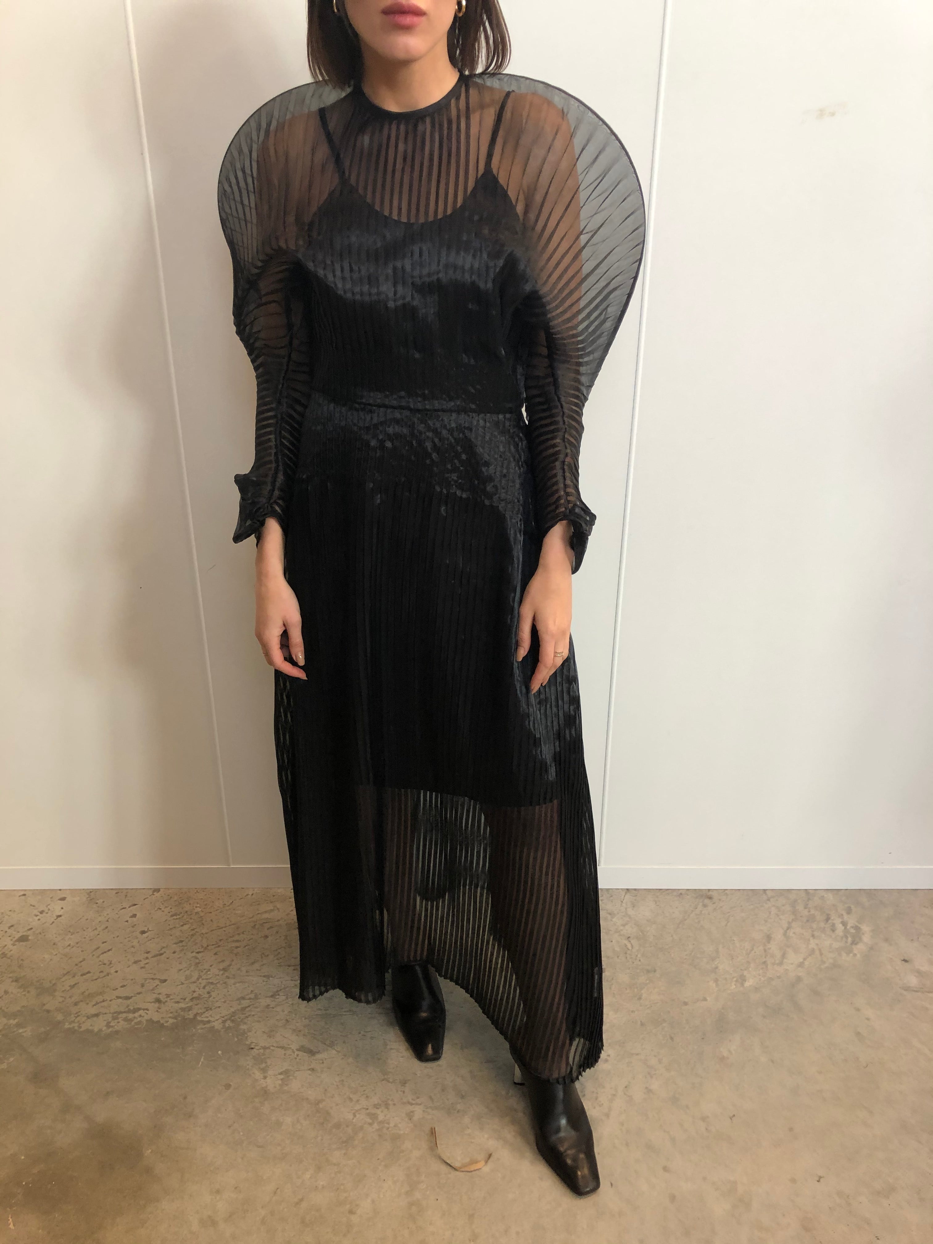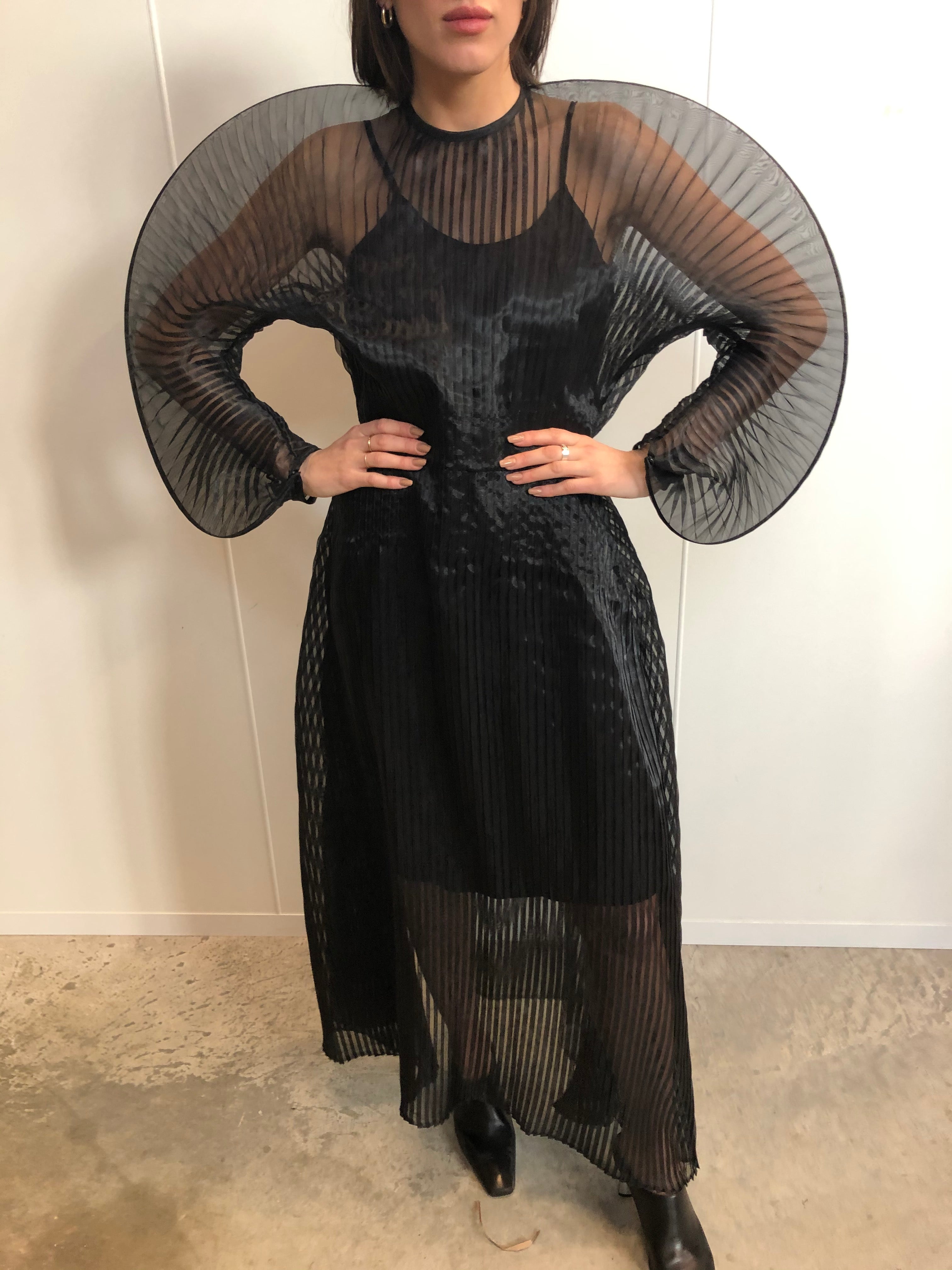 SID NEIGUM SIGNATURE SHEER PLEATED DRESS