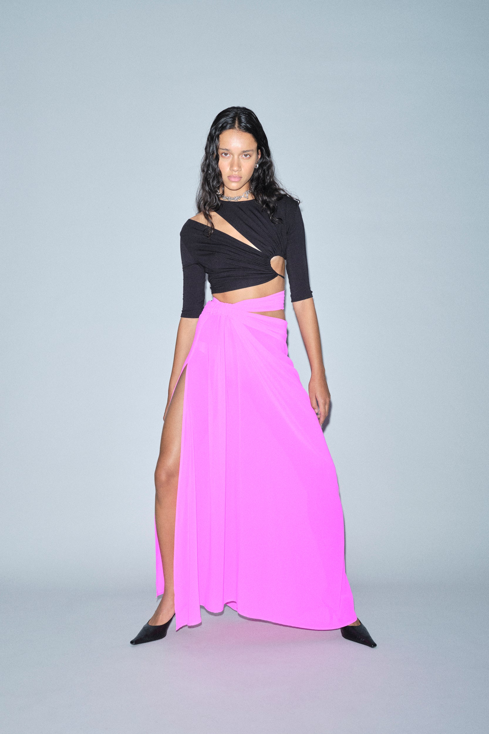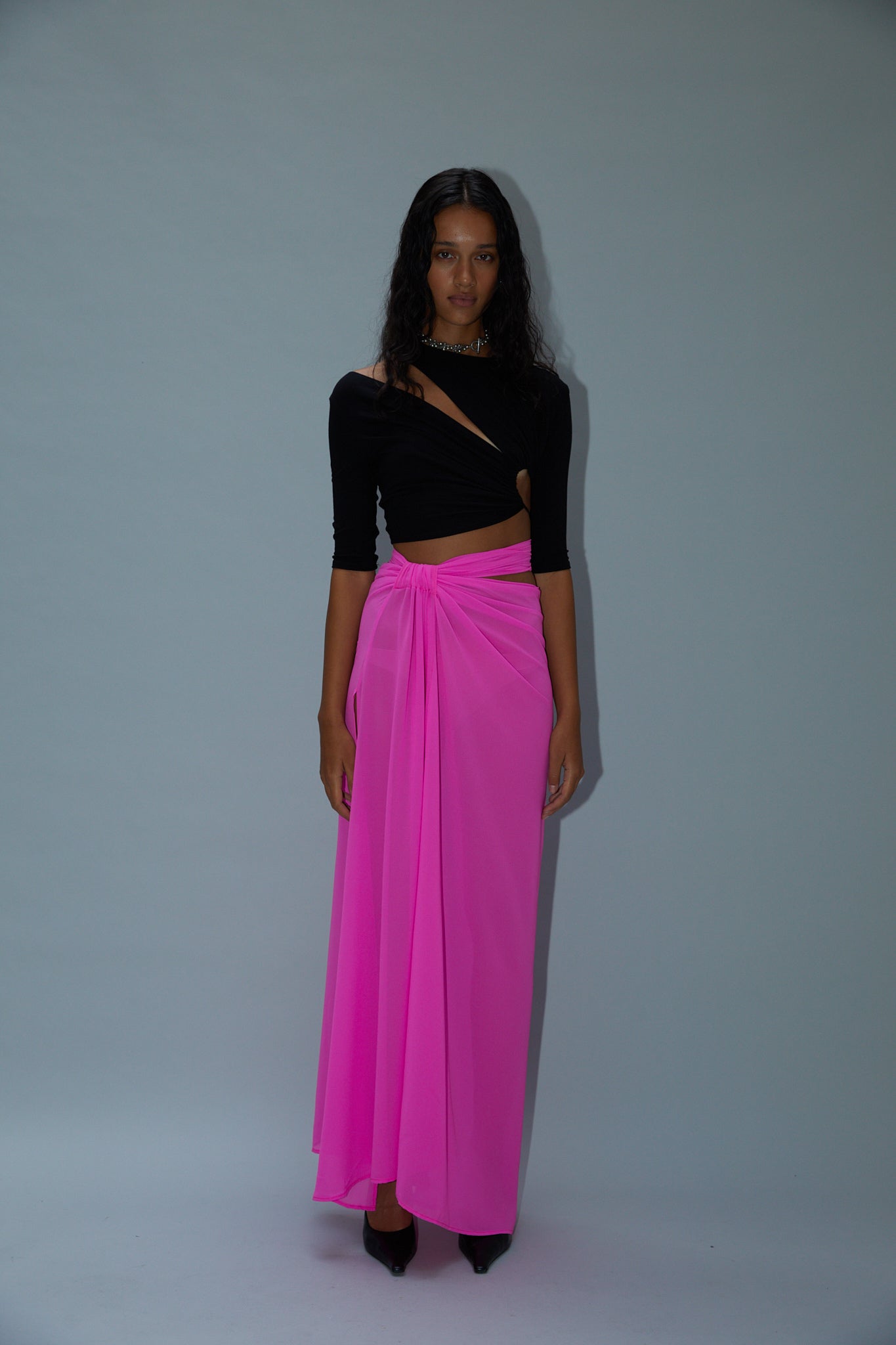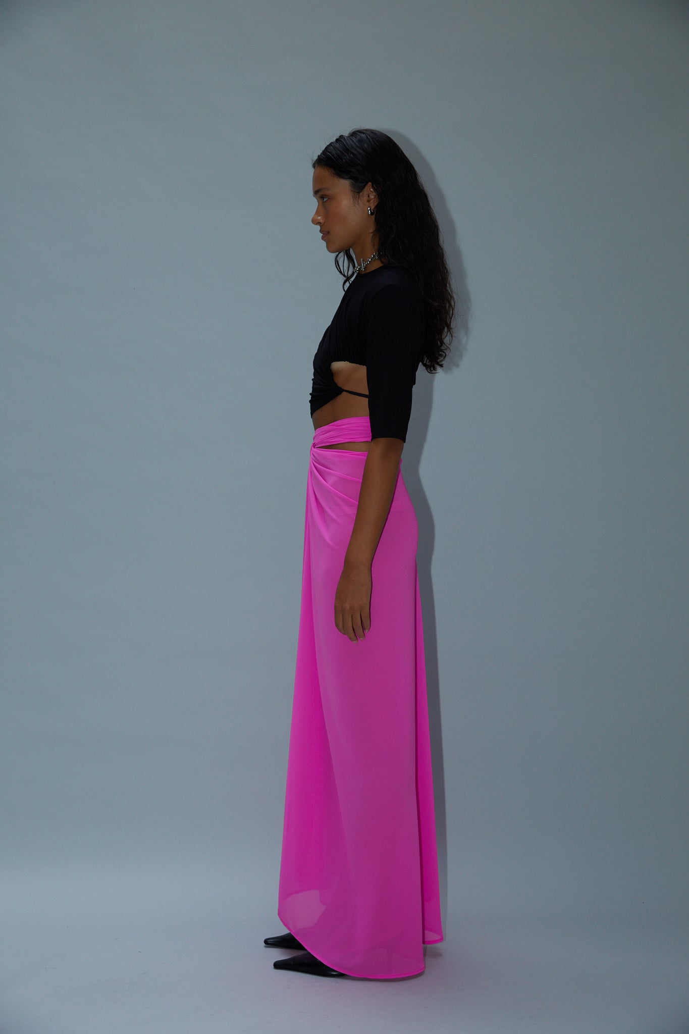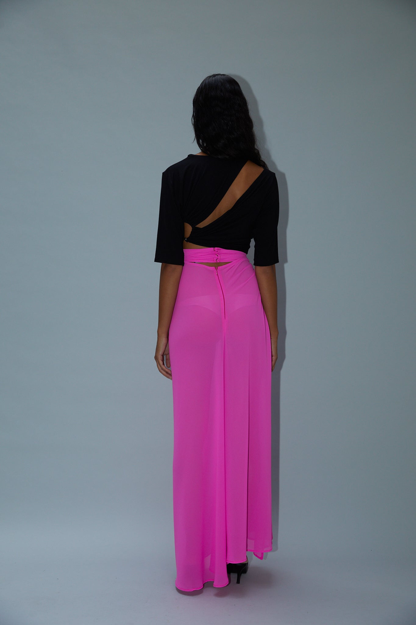 Lightweight stretch Bamboo Jersey cutout blouse.